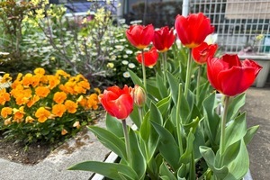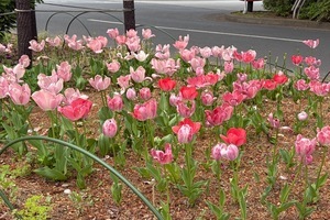 令和8年度も色とりどりのチューリップが一斉に花を咲かせ、赤や黄色、ピンクなど鮮やかな花々が風に揺れる様子は、訪れる人々の目を楽しませ、町全体を明るく華やかな雰囲気で包み込みます。庁舎の花壇では整然と並んだチューリップが美しい景観を作り出し、小中学校や公共施設でも子どもたちの笑顔とともに春の訪れを感じさせる風景が広がっています。