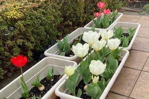 東京オリンピック2020大会を契機としたホストタウン交流の象徴として、オランダ大使館よりチューリップの球根が令和2年度および令和3年度の2回にわたり寄贈されました。町では役場庁舎の花壇を中心に植栽と管理を行い、交流の証を大切に育んできました。