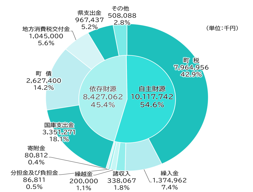 町の自主財源である町税は、堅調な傾向にある一方で、今後も「福祉・医療・介護」などの社会保障経費や公共施設の老朽化対策等の将来負担増が見込まれます。