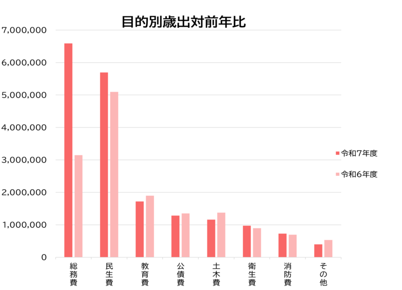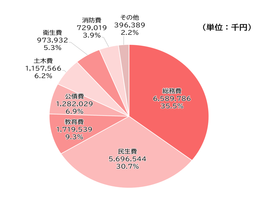 合計 | 総務費 | 民生費 | 教育費 | 公債費 | 土木費 | 衛生費 | 消防費 | その他 |