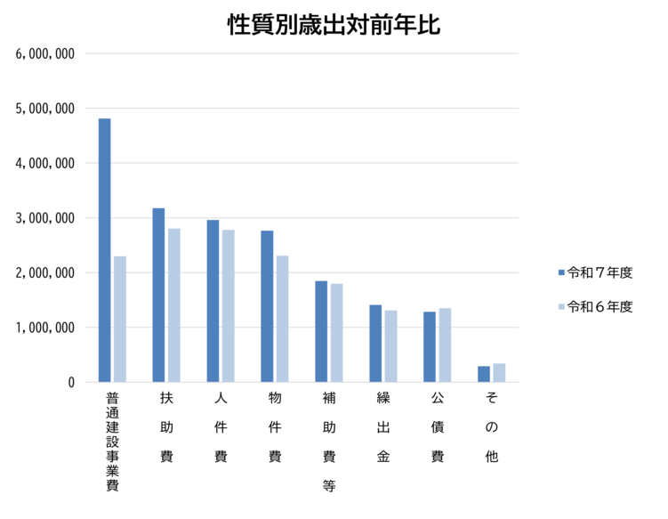 合計 | 普通建設事業費 | 扶助費 | 人件費 |